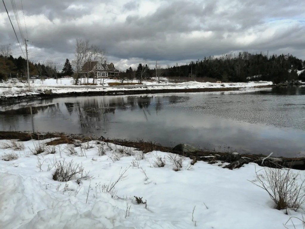 Sleepiness? The dog snoozes. An attention to small things: my breath; the creaking of the house beams (the wind will soon come then); the way the tide ripples through plaques of ice. Darker clouds shift across the sun.